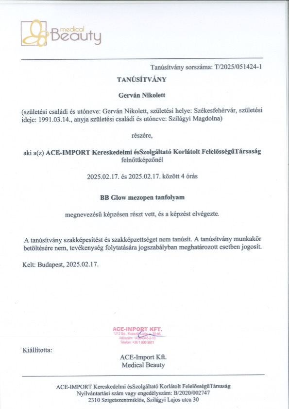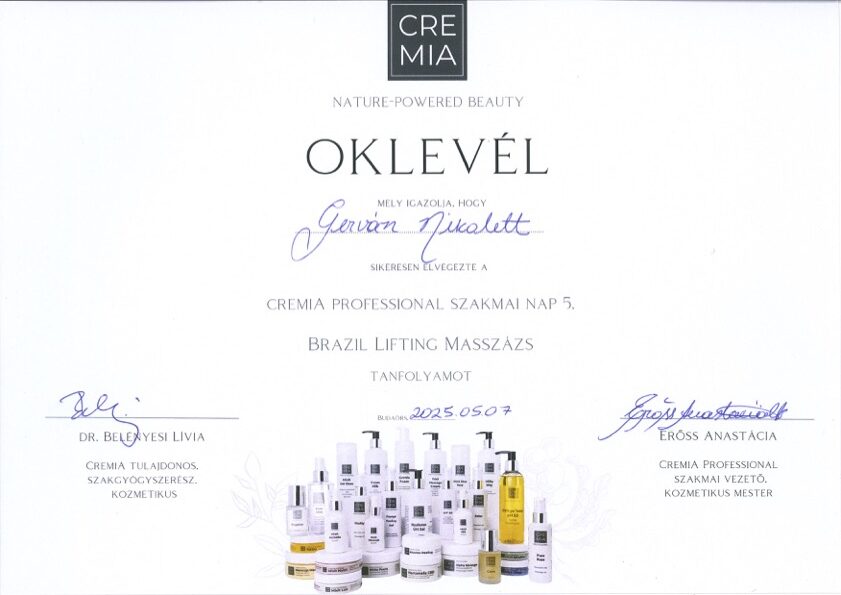 RefectoCil - Szempilla és szemöldökfestési technikák és Sensitive tanfolyam oklevél